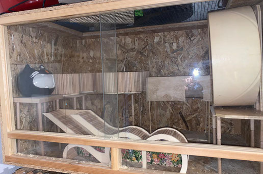 Neben einem ausreichend großen hamsterkäfig mit sand und streu.
